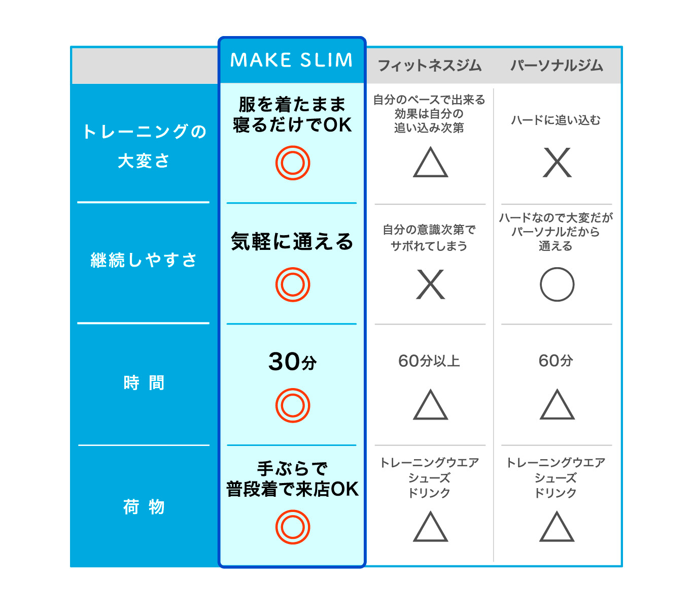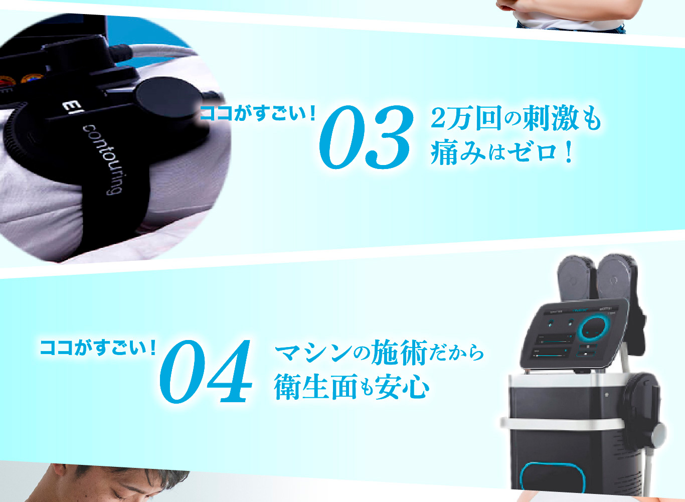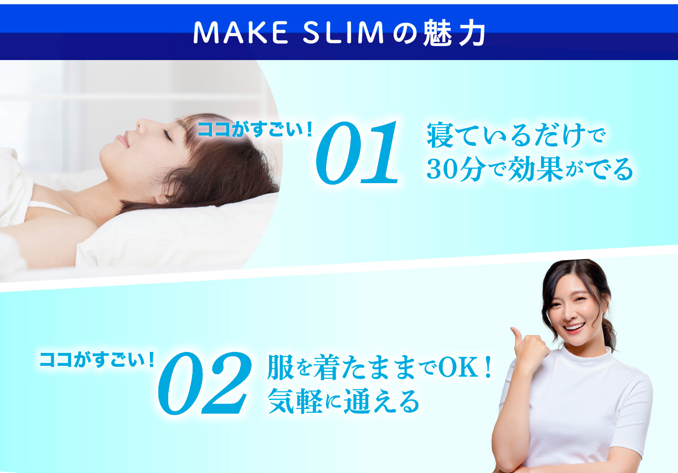 痛みの感じ方には個人差がありますが、MAKE SLIMは痛みが少なく、深部の筋肉を有効に刺激することができます。